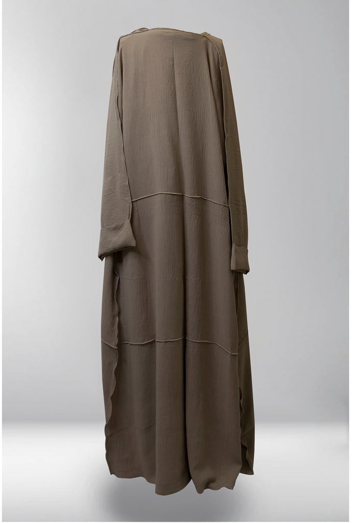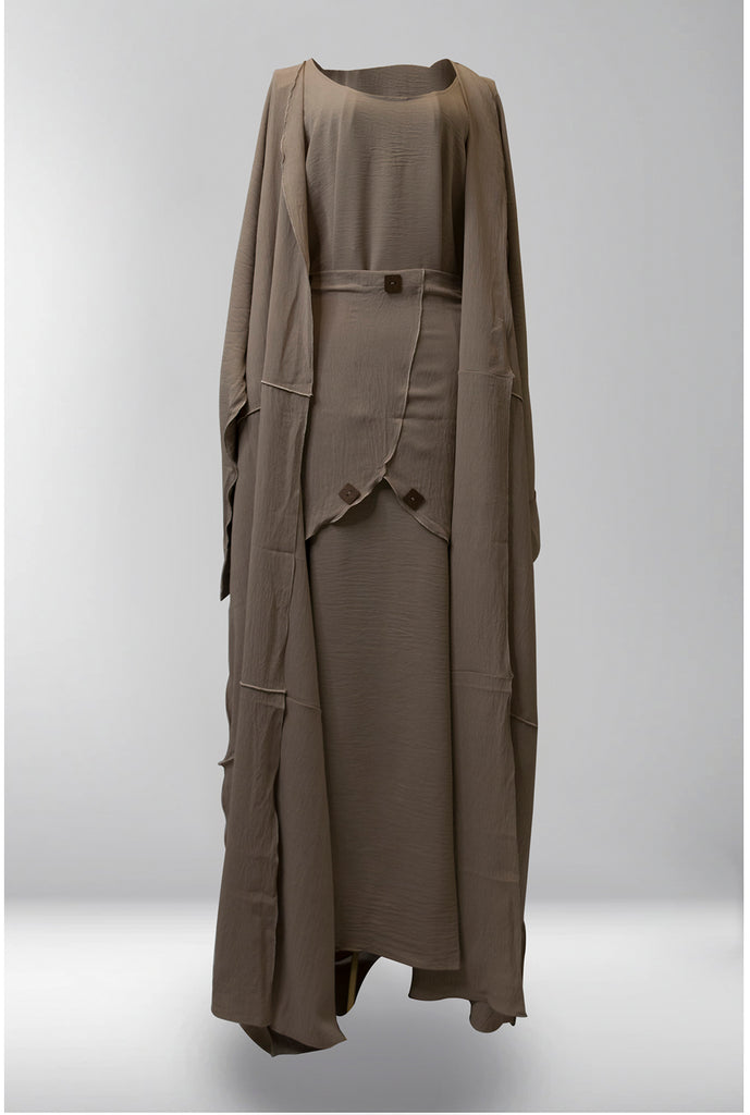 This casual 4 piece abaya comes complete with an inner slip dress, tie up skirt, open abaya and hijab. Perfect for Spring and Summer.